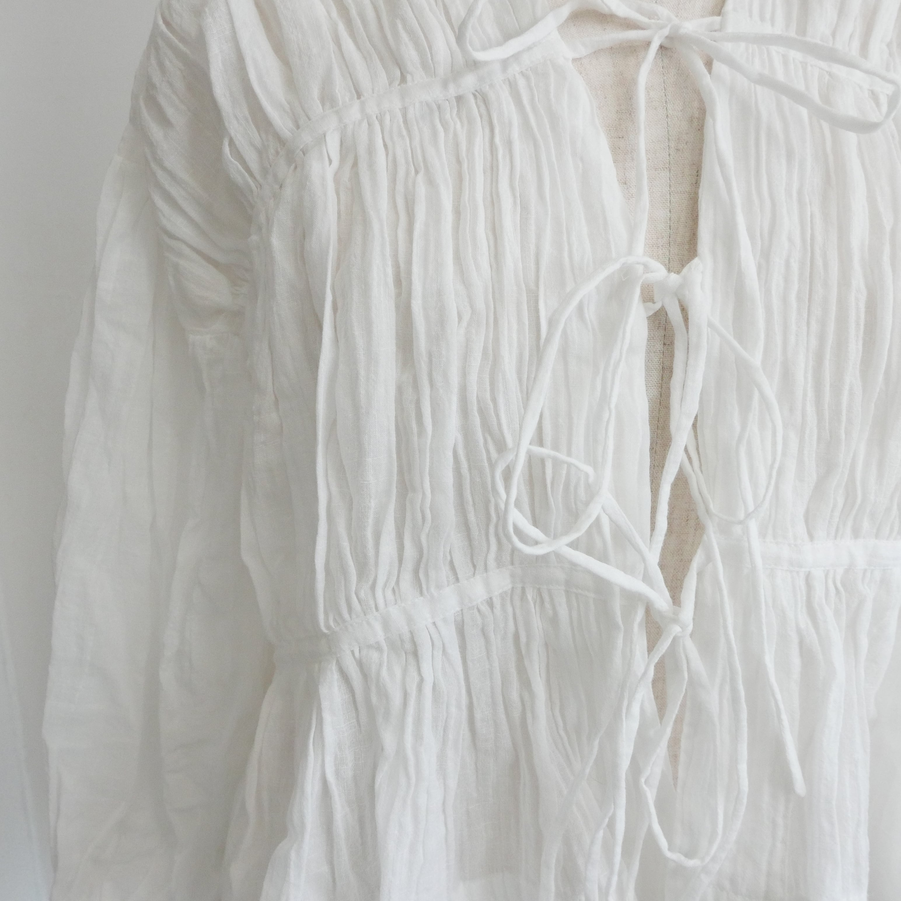 3つのリボンはきちんと閉めても良いですし、前を全部開けたり、1箇所だけ結んでラフに見せたり、中にはノースリーブで涼しげなコーデも楽しめます。
